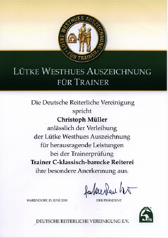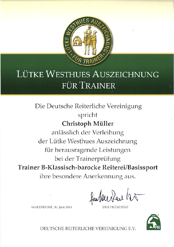 Wichtig ist ein korrekter Sitz, aus dem heraus eine fast unsichtbare Hilfengebung und eine feine Einwirkung auf das Pferd möglich werden. Für eine reiterliche Weiterentwicklung ist auch die Harmonie zwischen Schüler und Lehrer wichtig. Die Ziele des Einzelnen sollten klar sein. Mir ist wichtig, Pferd und Reiter, ihren Möglichkeiten entsprechend, individuell systematisch zu fördern und nicht nach vorgefertigten Schablonen auszubilden. Parallel zur Gymnastizierung unter dem Reiter sowie der Arbeit an der Hand halte ich das Reiten im Gelände für eine gute Möglichkeit, Vertrauen und Losgelassenheit zwischen Reiter und Pferd herzustellen.